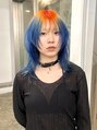 レイヤーウルフカットネオンオレンジルーツカラーブルーカラー/ホットペッパービューティー