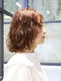 ぼぶべーすのえゆるふわパーマ。似合わせ顔まわりの小顔カットで、明るさを演出。アプリコットブラウンで、ツヤ束感アップ。