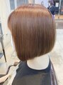 丸みのある前下がりボブ。まとめやすくツヤの出やすいスタイル。簡単スタイリングで忙しい朝も時短できます!カラーは明るめのピンクベージュでイメージもパッと明るくなるスタイルです!
