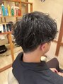 柔らかい質感のツイストスパイラルパーマで、ほどよいボリュームと動きをプラス。マッシュベースで顔まわりもスッキリと仕上げ、清潔感とトレンド感を両立したスタイルです。
