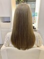 全体にブリーチ後、アッシュベージュをオンカラーしました。ダブルカラーにしか出せない柔らかい質感が魅力です。ケアブリーチでダメージを最小限に抑えながらブリーチしています。