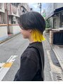 襟足カラーでプラスデザインです!マッシュウルフに変化をつけたい方!襟足ブリーチでイメージチェンジしちゃいましょう◎ワンブリーチでできるイエローカラー
