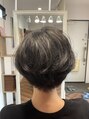 重めのグラデーションボブアシメちょっとだけ、変化させて個性を出して、トップは癖毛を生かして動きを出します。手入れは、シャンプー、コンディショナー後タオルドライ、ヘアオイル使用全体に馴染ませて、根元から乾かしワックス仕上げ