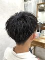 サイドからバックにかけて刈り上げたメリハリのあるスタイルです♪動きのあるパーマで立体感を出しつつ、耳まわりはスッキリ仕上げてどの角度から見てもかっこいい、ビジネスにもカジュアルにも合う万能スタイルです!スタイリングも簡単です◎