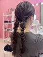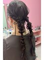 トップからふんわりと巻いてツインの編み下ろしヘアに仕上げました♪後ろめに作ることによって甘すぎない可愛いヘアスタイルです☆