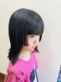 バッサリ、個性的なヘアスタイルにしました!お子さまのご希望で、姫カット♪フロントも姫カットに合わせて、ワイドなパッツンに!後ろは外ハネにしました♪