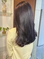深みのあるラベンダーブラック系カラーで、ツヤと透明感を両立。顔周りの姫カットがロングの中にも遊び心が出て楽しめます!モデルさんはブリーチベースのためラベンダーの発色がよかったです。ベースが暗めの方は、ダブルカラーがおすすめです!
