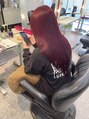 赤好きにはおすすめカラー。ブリーチ1回履歴あり。ロングプリンからのイメチェン。夏カラー準備まだの方今からでも間に合います。履歴によってはいきなり出来ないこともあるのでお早めにお待ちしております。