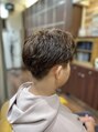 今回は、流行のセンターパートのスタイルにしてみました。トップは自然に分かれるようにカットし、中は刈り上げる事で、全体的にスッキリしたシルエットにしました。