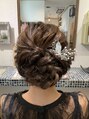 前からはちょいルーズでシンプルに☆後ろからは編み込みで作ったシニヨンで華やかに♪髪飾とも相性バッチリ☆シンプルだけど、ドレス負けしない結婚式にオススメの定番スタイルです♪編み込み、ロープ編み、ツイスト等色々な組み合わせも可能です☆