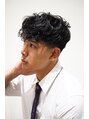大人スペインカールビジネスマンでも取り入れやすい大きめなボリュームが出やすくなるようなパーマです。サイドにはさりげなくテーペーフェードでスッキリ