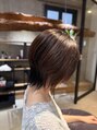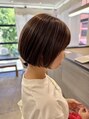 耳にかけられるスッキリショートボブ。丸みのあるスタイルなので、襟足やサイドが短くても女性らしい柔らかさを残したスタイルです♪オリーブブラウンなお色味で夏らしく爽やかな印象に。