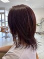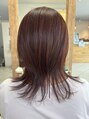 髪を結ばない日も、暑苦しくないように、かろやかな、レイヤースタイル。スタイリングを使用して、あえて癖毛をいかした仕上げにしました。