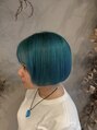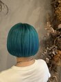 鮮やかラムネブルーが夏らしいWカラー。ブリーチをしてるからこそできるブルーがかわいい♪シャンプーするごとにどんどん薄い水色になっていく過程も楽しめるカラーです!カットはサイド、襟足を2mmでしっかり刈り上げ夏でも涼しげなボブになりました♪