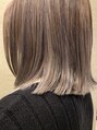 肩つくギリギリのワンレンスタイルです。中間から毛先にかけてブリーチをし、ツヤ感のあるシルバーグレイカラーに仕上げました。