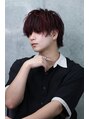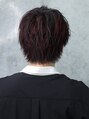 目にかかる前髪と無造作な質感、赤のハイライトで圧倒的なオーラを出せるスタイルです