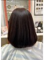 艶と落ち着きのあるブラウンカラーと肩上のボブスタイル。カールアイロンで仕上げました。