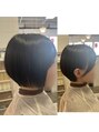 やや前下がりにサイドは耳にかけれる長さで毛先は軽めに仕上げました。耳にかけた時に小顔に見えるようにサイドバングも作りました。