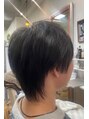 頭のハチが張る方でもコンパクトなショートになるように毛量調整しカットしました。