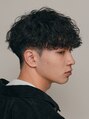 刈り上げを高めに設定し、フロントへ向かうような毛流れが特徴のスペインカールは、男らしく爽やかな印象になることがポイントです!クリーム状の薬剤を使用して髪をケアしながらパーマをすることで、外国人風のパーマスタイルに*