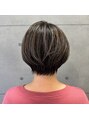 動きと立体感が引き立つハイライトを入れた、上品なグレージュカラーのハンサムショート。首元がすっきり見えるコンパクトなシルエットで、大人のこなれ感を演出します!白髪ぼかしにもおすすめのデザインです!