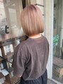 切りっぱなしベースをブリーチ後にハイトーンのミルクティーベージュにカラーリング。柔らかめの仕上がり。