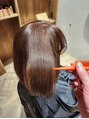 根元は白髪染め、毛先はおしゃれ染めで染め分けしてます。白髪があるからといって白髪染めで暗くしなければいけないのではなく、デザインやなりたいスタイルによって技法が変わります。ご希望のスタイルをぜひご相談下さい。
