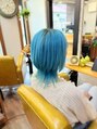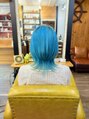 派手髪が得意な八王子美容室トルチェのやなです!今回はひし形シルエットのウルフカットを淡カラーのアクアブルーに仕上げました♪ケアブリーチでしっかり脱色して、ペールブルーを入れるとホワイト感も感じるパステルカラーに!