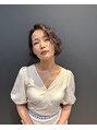 このヘアースタイルは、夏にぴったりの軽やかなボブカットで、自然で少し強めのウェーブが涼しげで爽やかな印象を与えます。肩より上の長さで、暑い季節でも快適に過ごせます