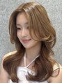 顔まわりにたっぷりレイヤーを入れた軽やかなロングスタイル。ゆるやかなカールが動くたびにふんわり揺れて、柔らかさと女性らしさを演出。透明感のある艶ブラウンで、落ち着きの中に華やかさをプラス。上品だけど抜け感のある、大人のためのフェミニンヘア。