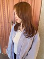 顔まわりのレイヤーがさりげなく動きをつくり、ハニーラテカラーが肌をワントーン明るく。乾かして毛先をワンカール巻いて、オイルをなじませるだけで360°華やかロング。湿気に強く夕方まで崩れ知らず、忙しい朝にもおすすめのスタイルです。