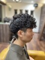 こんにちは!ASUKAです!!今回は,スペインパーマです。パーマをかけて無造作にカールを作り,日頃のセットも楽チンです!強めのカールで「夏らしさ」もバッチリ!〈理容室/一宮市/スペインパーマ/メンズ/夏ヘアスタイル〉