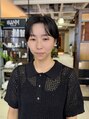 コンパクトなショートヘア。今時期は前髪を下ろすと暑いので、分ける方向で伸ばしていきたいので、流れやすいようにカットしています。