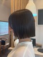広がりやすいくせをお持ちの方におすすめ。ストレートパーマでボリューム感を抑えて、すとんとしたシルエットの切りっぱなしボブに。カラーはシアーベージュで抜け感も忘れずに。