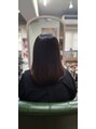 緩やかな前下がりボブ。イルミナカラーのアンバー使用で暖かみのあるお色に☆