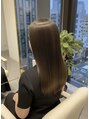 艶やかなブラウンのロングヘアは、メテオカラーで髪の芯から輝きを引き出しなめらかな手触りと自然な光沢が特徴です。深みのある色味が上品さを際立たせ、光の当たり方で表情を変える美しい仕上がりです。【髪質改善/髪質改善カラー/銀座/東銀座/艶カラー】