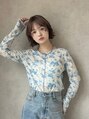 毛先の外ハネでこなれ感をプラスしたショートボブスタイル。顔まわりにはニュアンスを効かせて、小顔にも◎。全体は丸みを残して、女性らしい柔らかさと上品さを両立。カラーは赤みを抑えたベージュ系で、透明感たっぷりに仕上げました