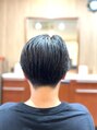 サイドツーブロックで収まりよく、バックを刈上げでスッキリと。トップは毛量調節して軽さを入れつつまとまるようにカット