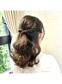 会社のイベントのためヘアセットをさせていただきました。派手すぎずと言うご希望で、S字カールで大人可愛くハーフアップにしました!湿気の多い日だったので、長時間崩れないようにしっかりとカールをつくりました!