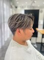 “抜け感”と“洒落感”を両立した、大人のセンター分けショート。サイド&バックはしっかり刈り上げ、全体をタイトに整えて清潔感◎シャドールーツで根元に深みを残すことで、色落ちまで楽しめるこなれカラーに。上品に魅せたい人におすすめ