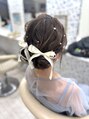 ツインシニヨン×リボン/結婚式/お呼ばれヘア/二次会へア