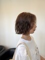 カットは毛先を1cmから2cm整えて顔周りにレイヤーを入れました!パーマは縦落ちのふんわりとしたパーマで襟足だけハネさすように当ててカラーはツヤ感のある柔らかいブラウンで染めて仕上げました!