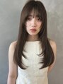顔まわりにたっぷりレイヤーを入れた小顔効果大のロングスタイル。赤みを抑えたシアーブラウンで柔らかく透明感のあるツヤ髪に仕上げた、大人っぽさと可愛さを両立した今っぽヘアで抜け感を♪
