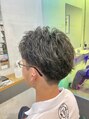 細かい毛流れのアップバングスタイル。周りはスッキリ刈り上げ全体的に軽い仕上がりのフェーザーショート