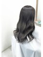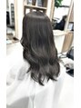 中間から毛先にかけて残っていたブリーチベースをいかして、透明感のあるアッシュグレーにしました。今回はブリーチなしです。