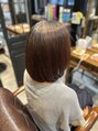 もともと毛量がとても多いのですが、軽やかでふわふわな質感が簡単に出せるよう、ドライカットで質感調整を丁寧にして仕上げています。