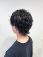襟足は外ハネ、ゆるめスパイラルパーマスタイルです。