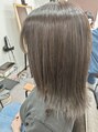 ローレイヤーで毛先の軽さは出しつつ表面は広がりを抑えまとまりやすくしました。ラベンダーアッシュ・ルフレカラー・モーヴ+ラピス染めました。以前入れたハイライトの黄色味と地毛の赤味どちらも抑えつつ落ち着いた柔らかい色味になるようにしました。