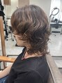ウルフレイヤーパーマです!立体感を出すために、縦巻きミックスです。顔周りを内巻きに巻いて無造作ヘアにしています。