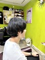 2ブロックで刈り上げた爽やかなショートスタイル。カリアゲは6ミリ~2ミリでグラデーションをつけて。トップはサイドに分け目を持ってきて大人っぽい雰囲気を出しています。カット前と比べると長さ・ボリューム共に抑えられスッキリして小顔効果も◎です。